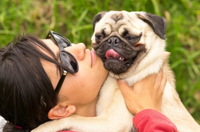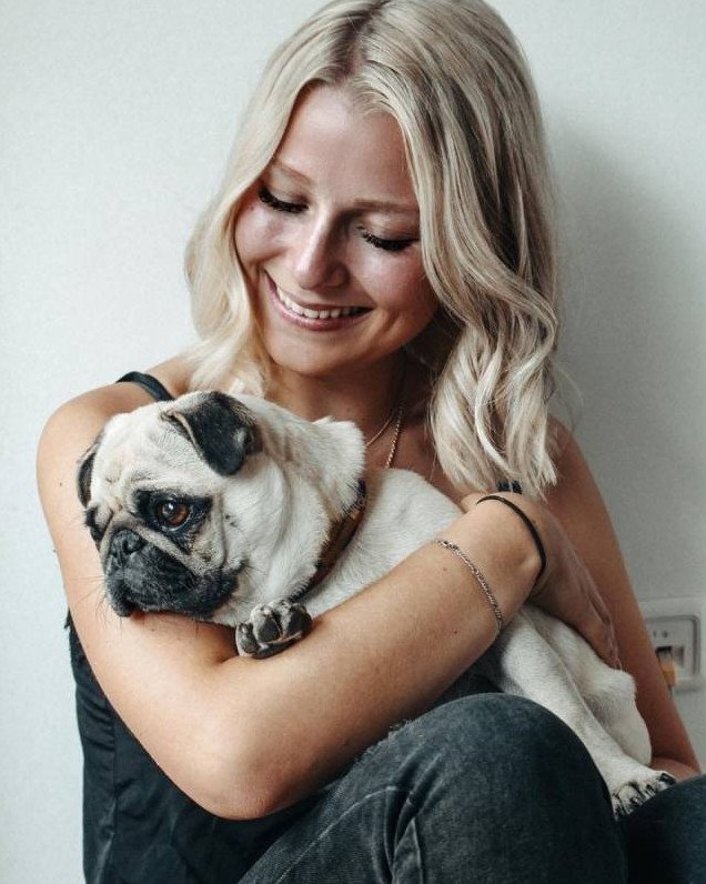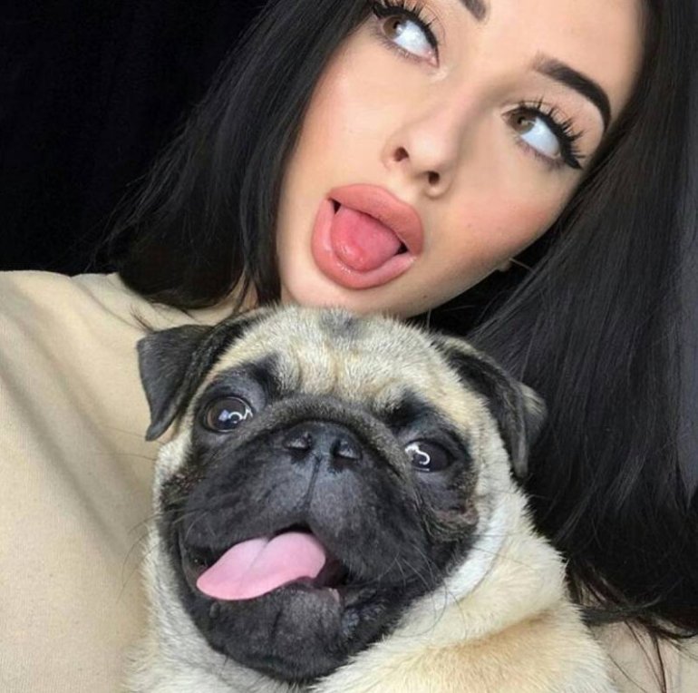 Девушка красавица с мопсом.