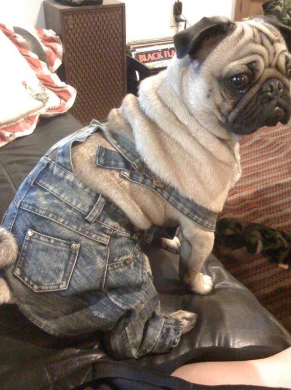 Мопс в джинсах.
