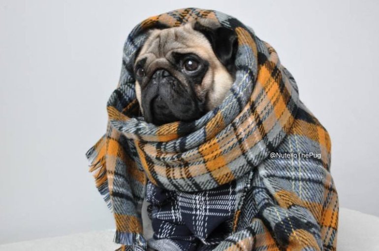 Мопсик в шарфике.