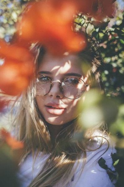 Девушка в очках и в цветах.