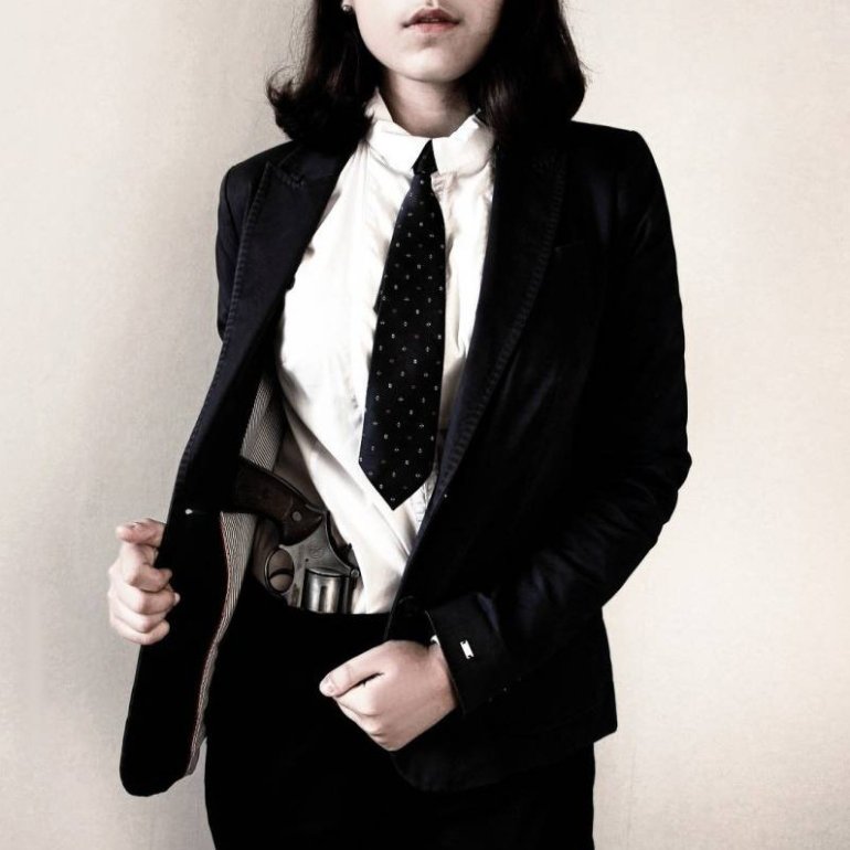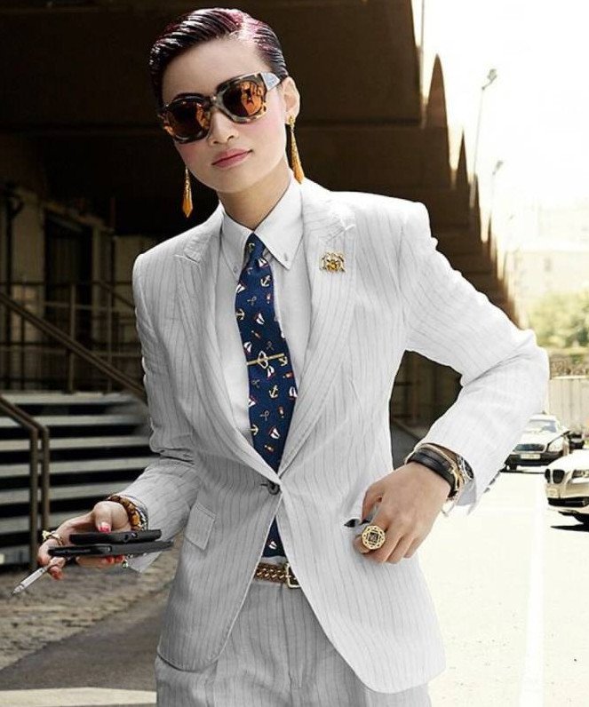 Красивая женщина в мужском костюмчике.