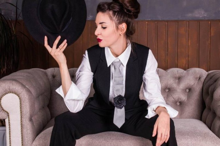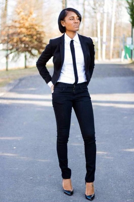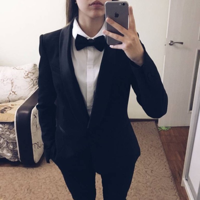 Дамский смокинг с галстуком.
