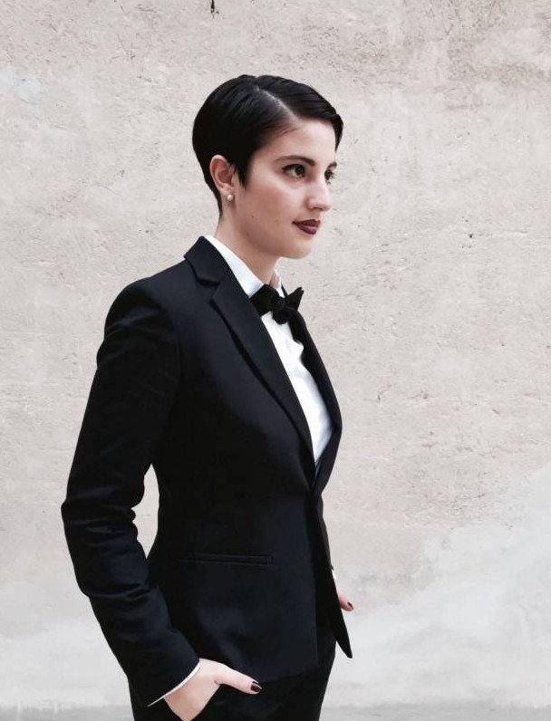 Хлоя Морец в смокинге.