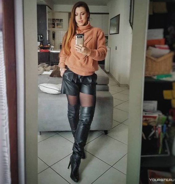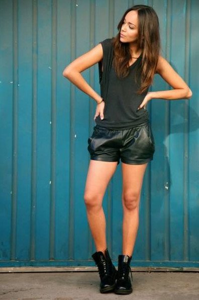 Фотосессия в кожаных шортах и Топе на улице в летнюю пору.