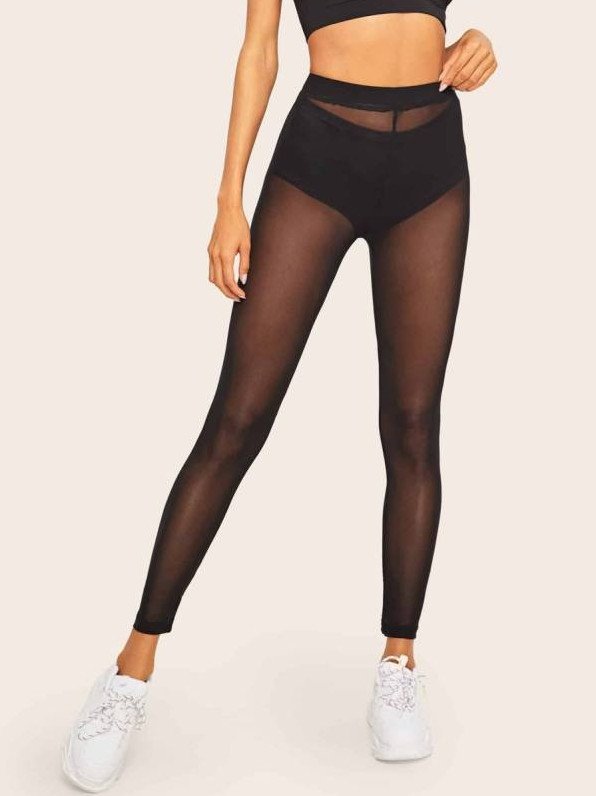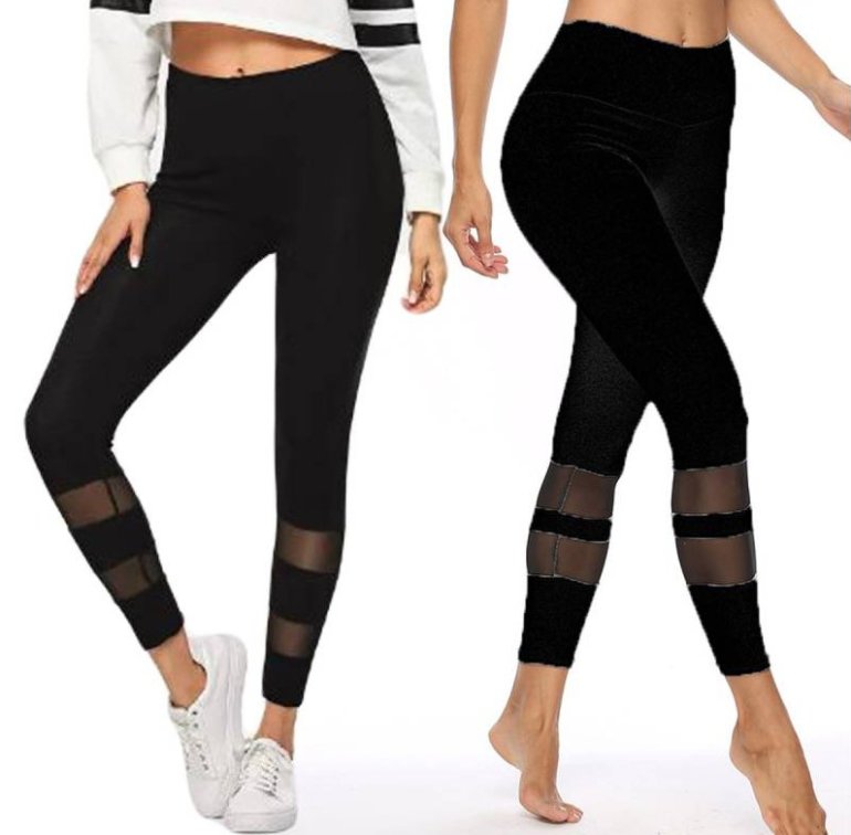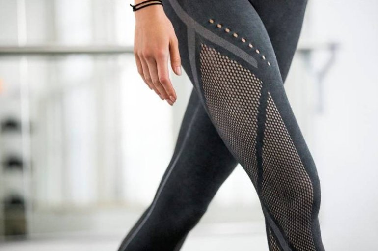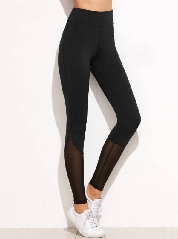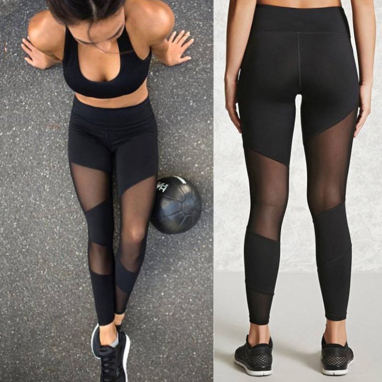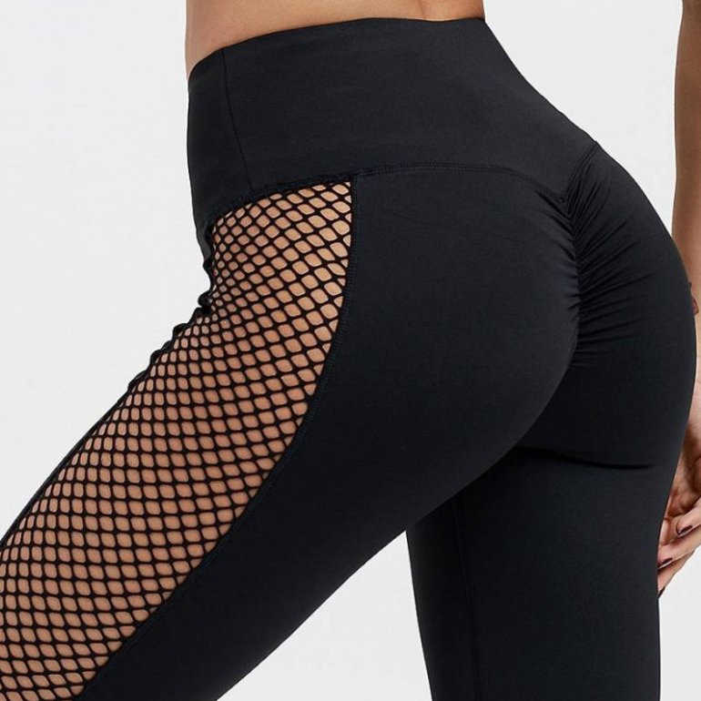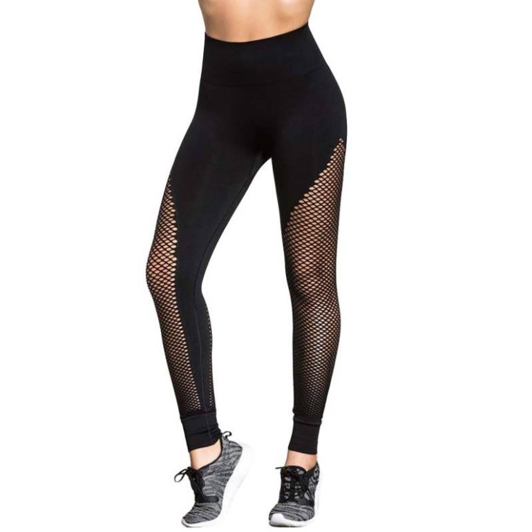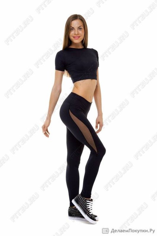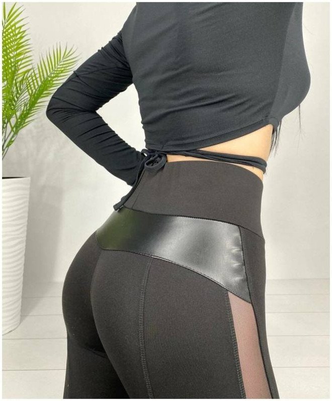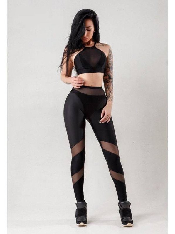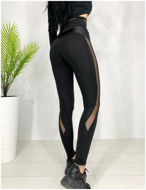 Лосины спортивные темные с сетью на бедрах LP.061.01.