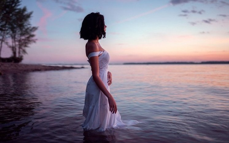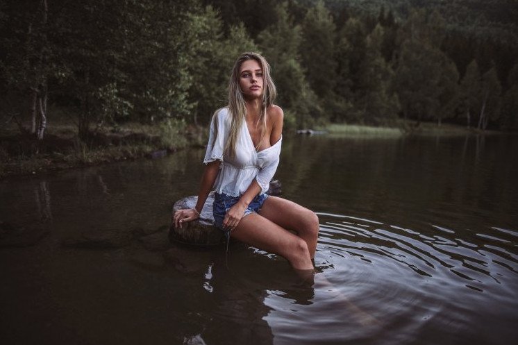 Красивая девушка у реки.