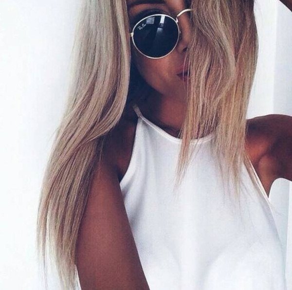 Девушка со светлыми волосами в очках.