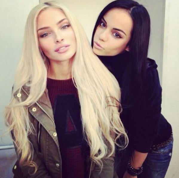 Тёмные милые девушки со светлыми волосами.