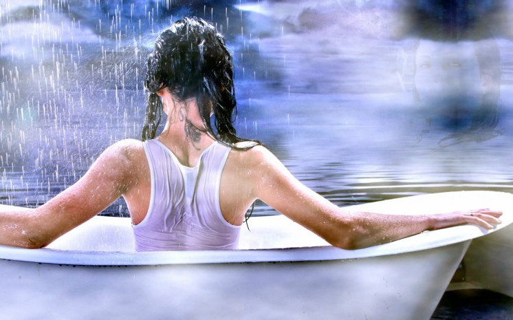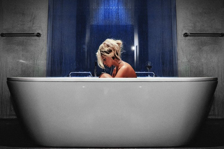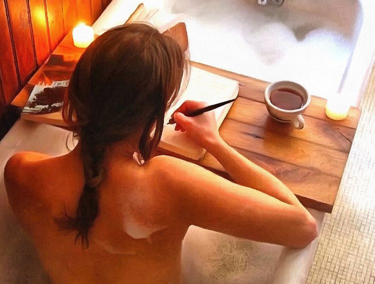 Картина симпатичная девушка в ванной.