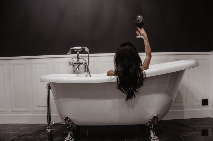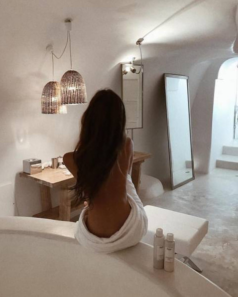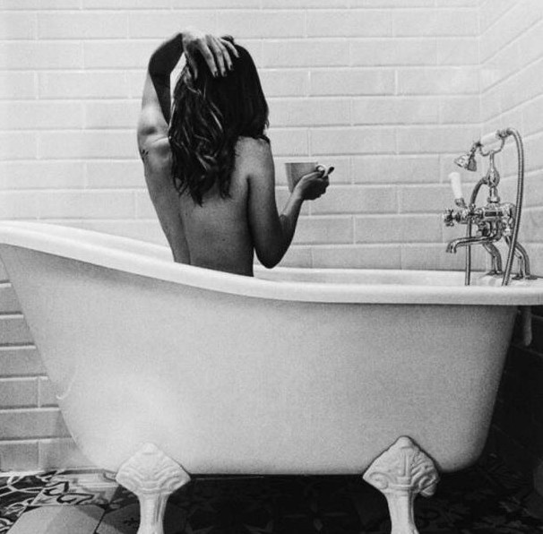 Симпатичная девушка спиной в ванную.