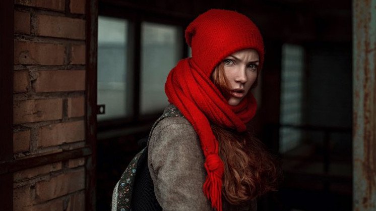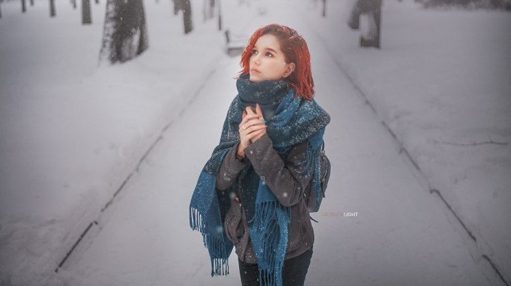 Зимняя фотосессия с шарфом.