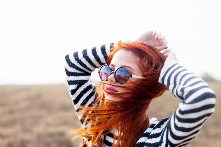 Рыжеватая симпатичная девушка красавица в очках солнечных.