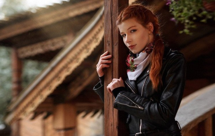 Красивая девушка с рыжеватыми волосами.