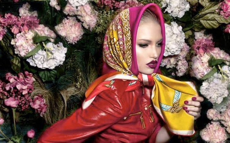 Симпатичная девушка красавица в модном платке.