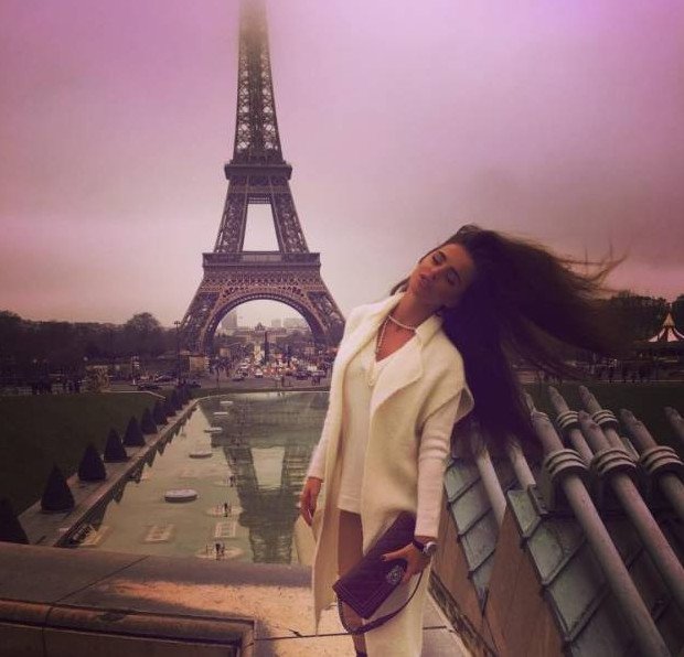 Тина Канделаки на фоне Эйфелевой башни в Париже.