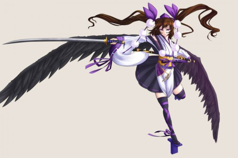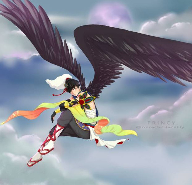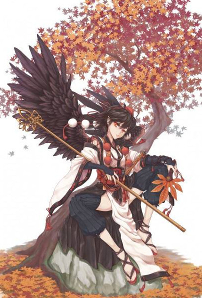 Тенгу девушка красавица сломанные Крылья.