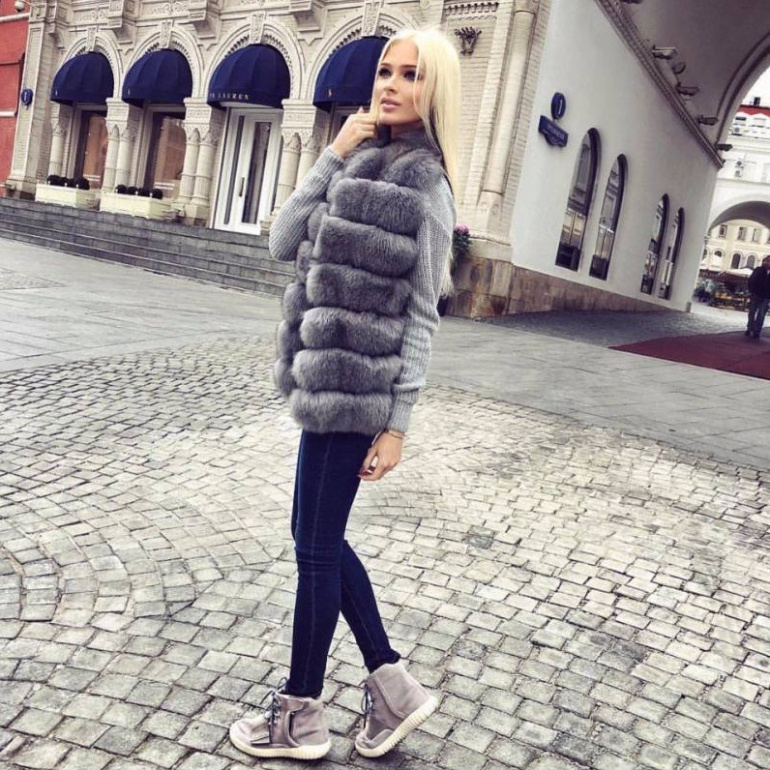 Алена Шишкова в меховой жилетке.