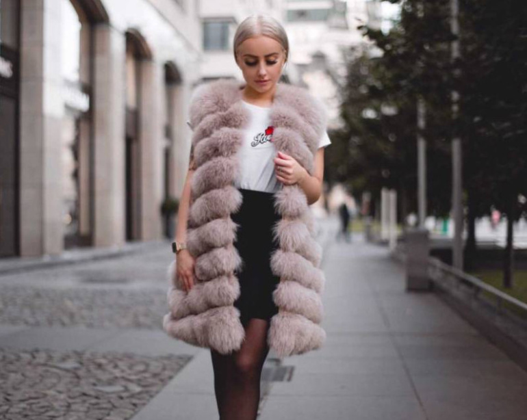 Девушка красавица в меховой жилетке.