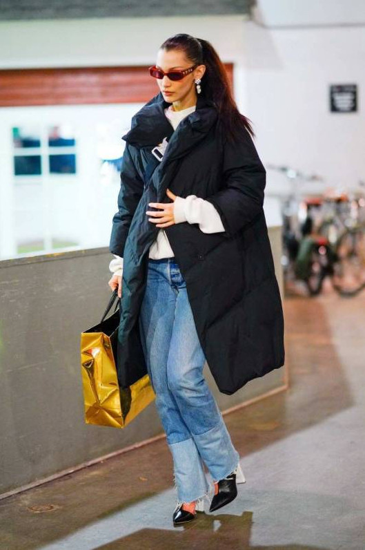 Джиджи Хадид в пуховике.