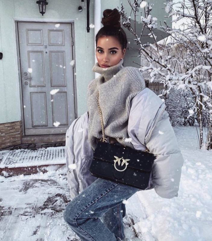Полина Гагарина в пуховиках 2020.
