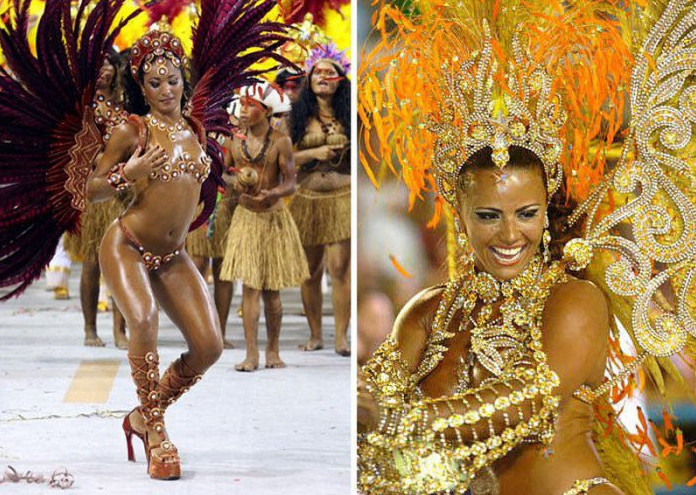 Горячие девушки-участницы карнавала в Рио-де-Жанейро 2016 года.