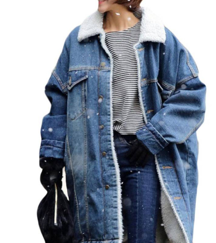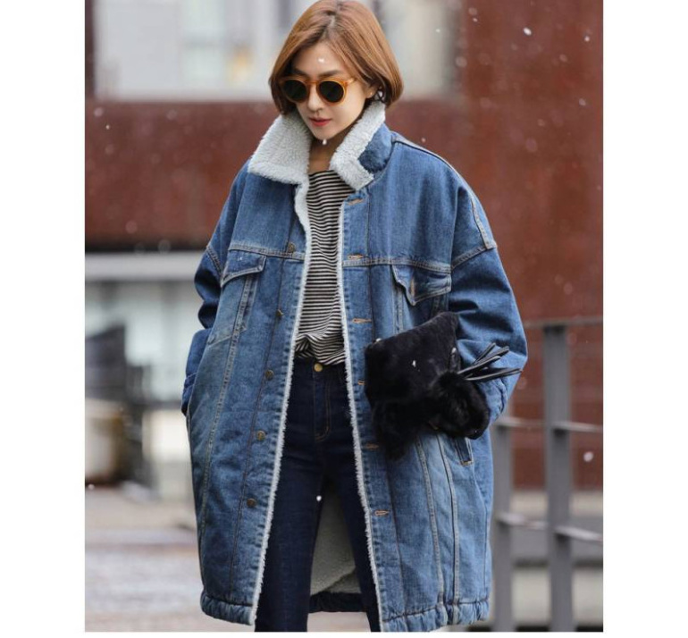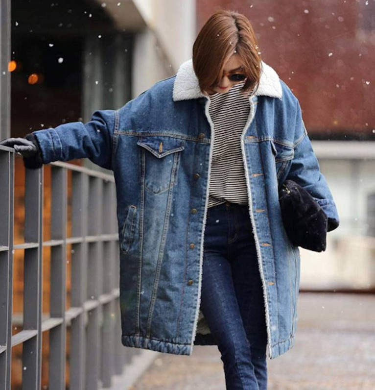 Джинсовое зимнее пальто женское.