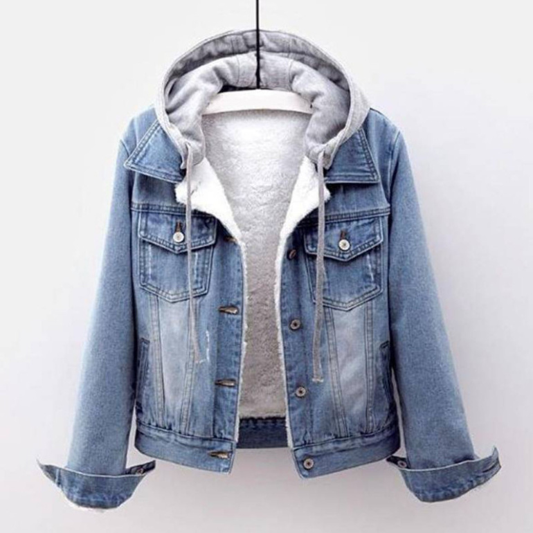 Теплая джинсовая куртка женская.