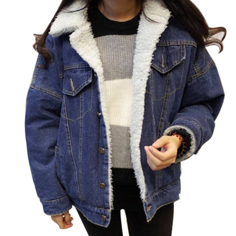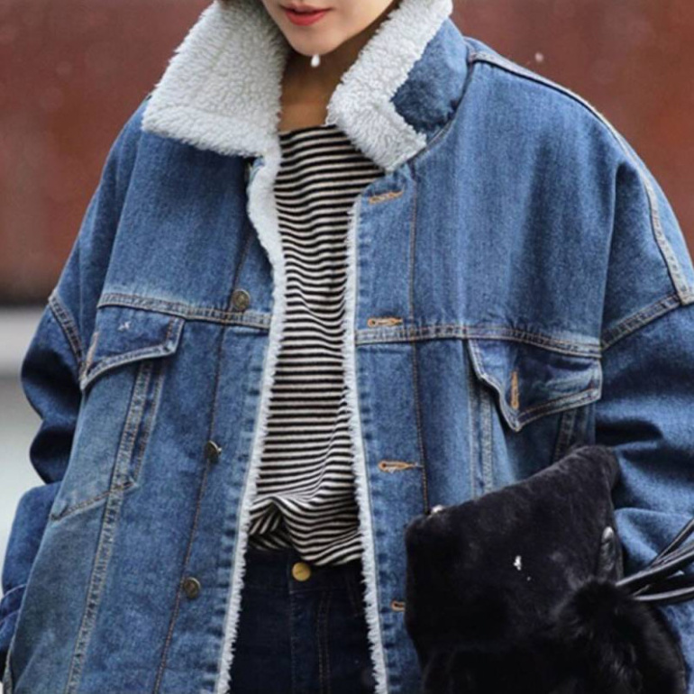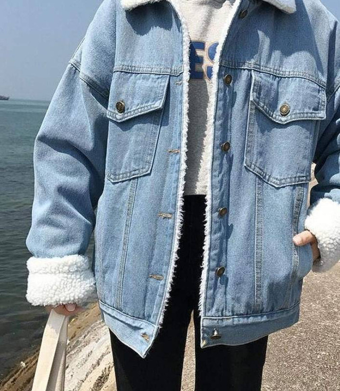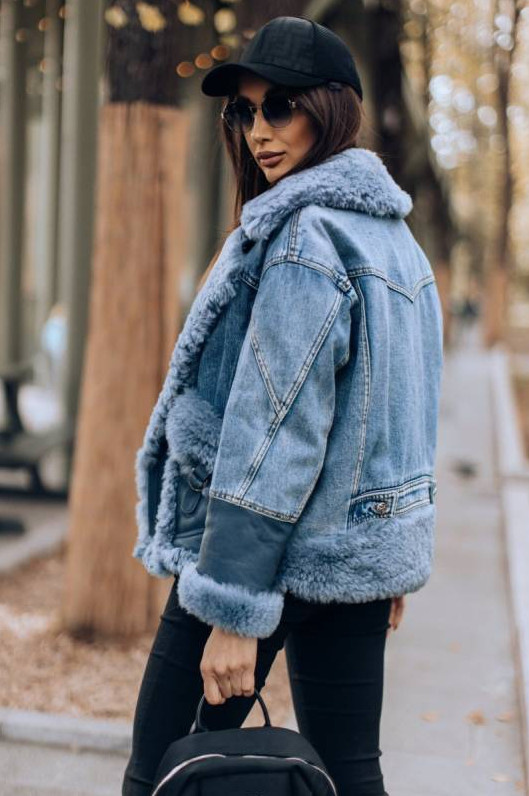 Джинсовая куртка с мехом женская оверсайз.