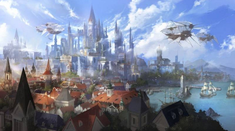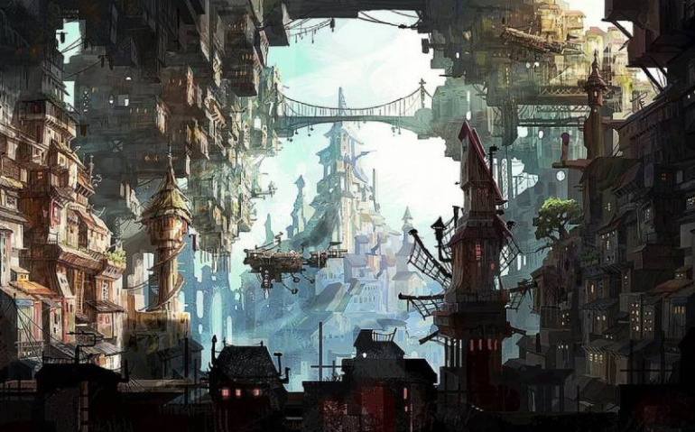 Город фэнтези дизельпанк.