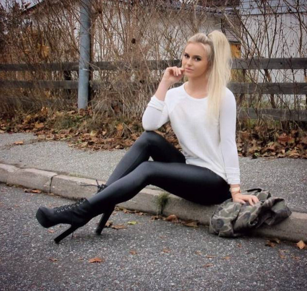Очень сексуальные девушки в кожаных леггинсах на улице.