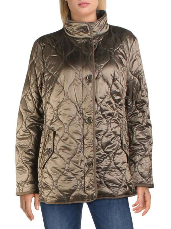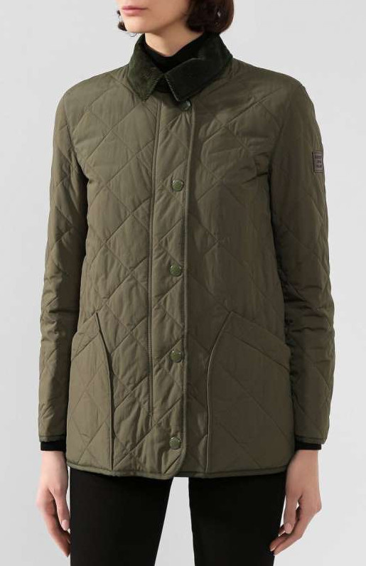 Зеленоватая стеганая куртка.