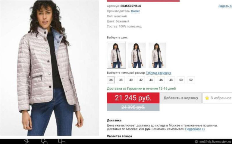 Пальто компании Basler.