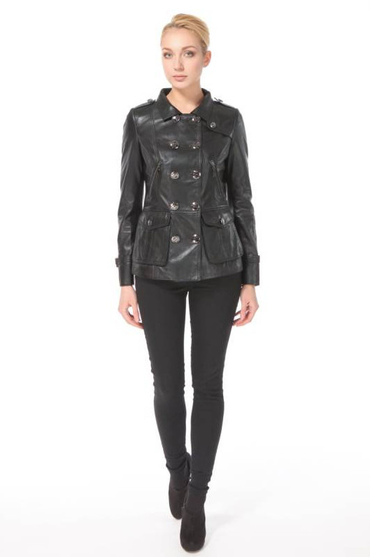 Кожаная куртка на пуговицах женская.