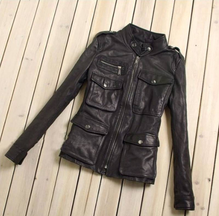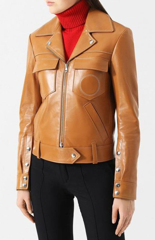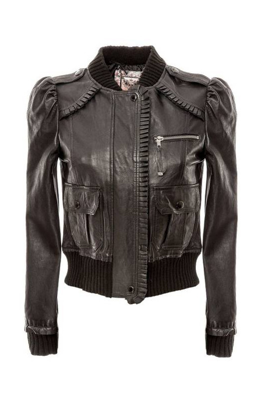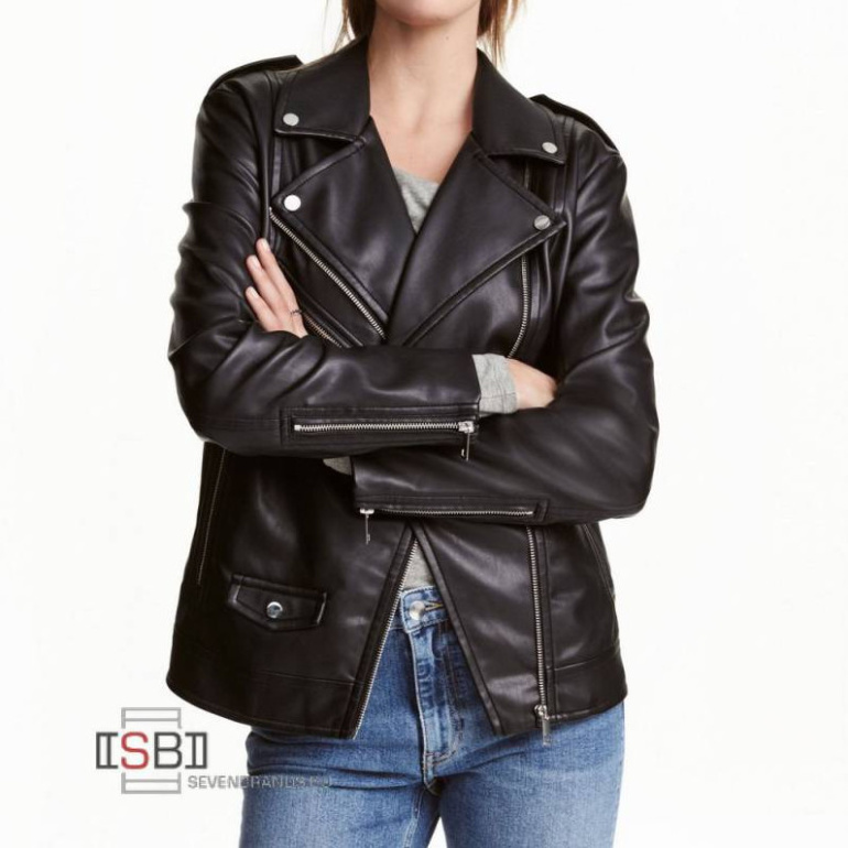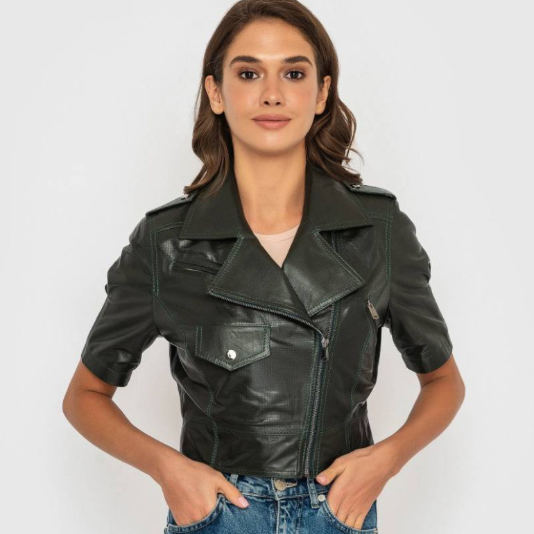 Кожаная куртка с накладными кармашками женская.