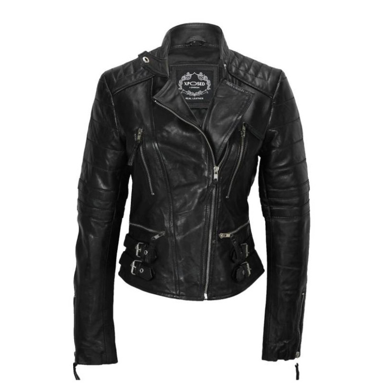 Leather Black Jacket Lambskin women.