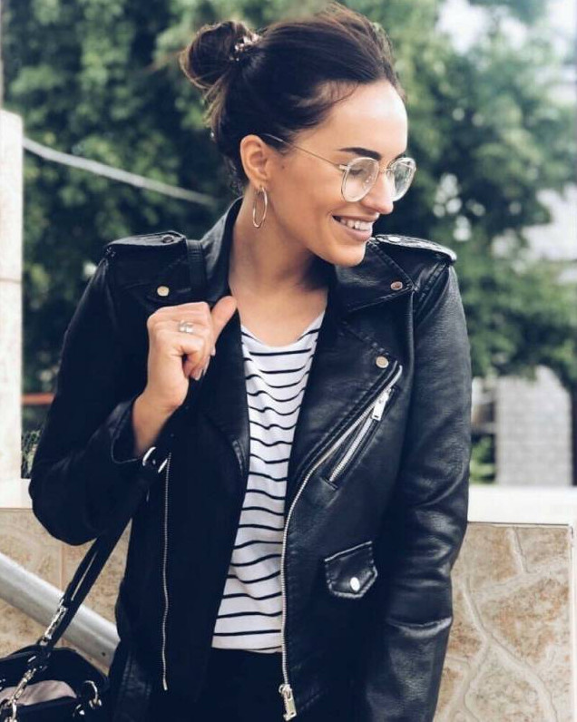 Темная кожаная куртка женская.