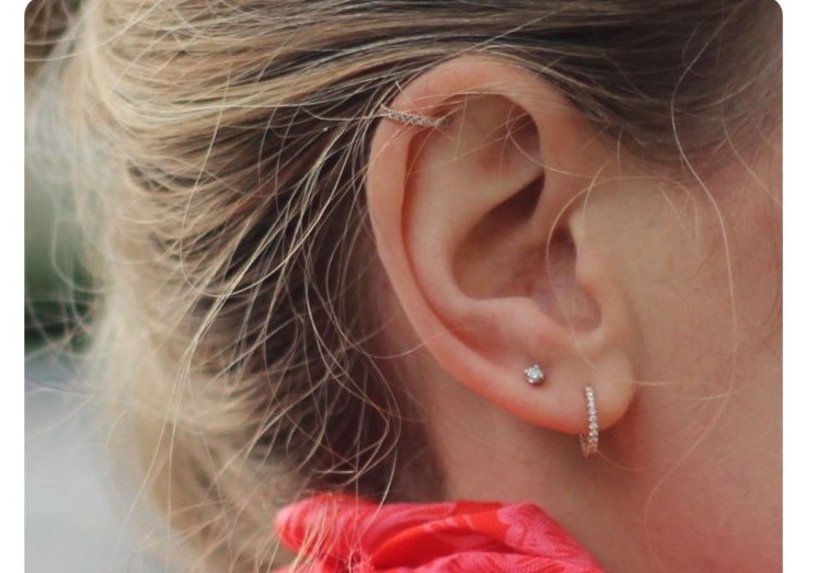 Две серьги в ухе.