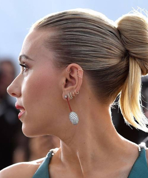 Джессика Альба пирсинг в ухе.