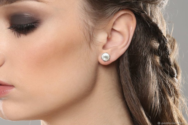 Красивые серьги в ушах.