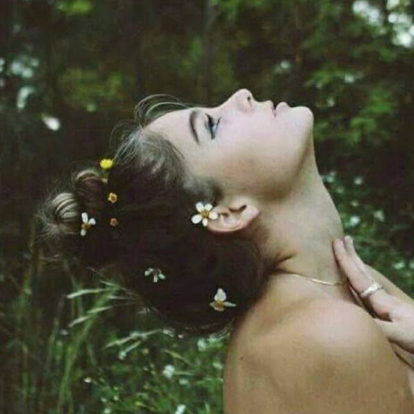 Красивая девушка с запрокинутой головой.