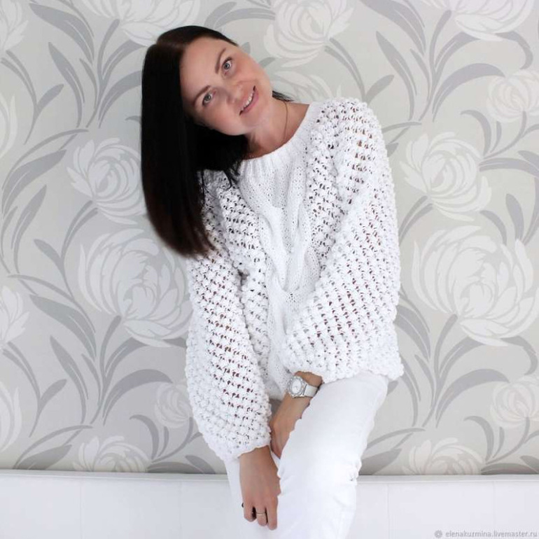 Пуловер оверсайз.Ира Снежная.