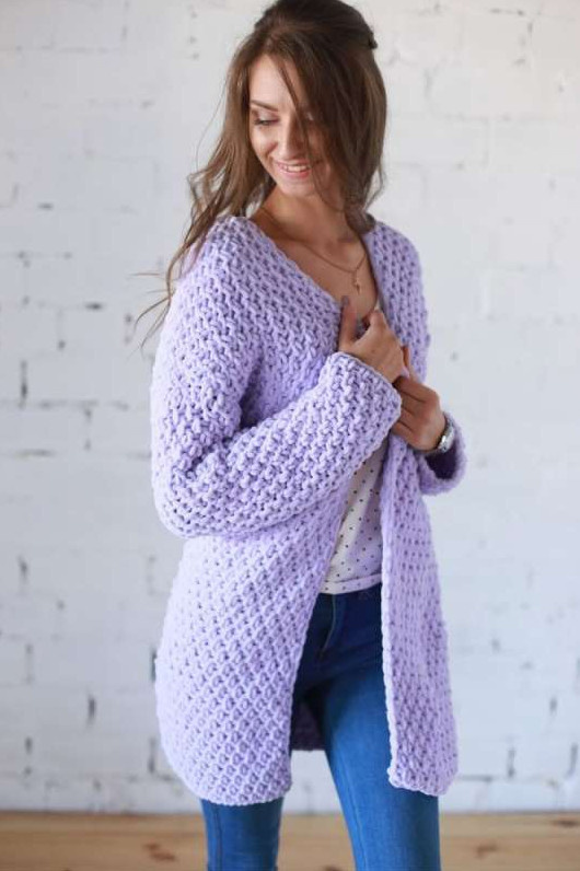 Сиреневая вязаная кофта.