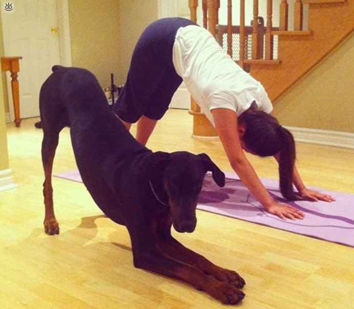 У собачки прикольная йога.