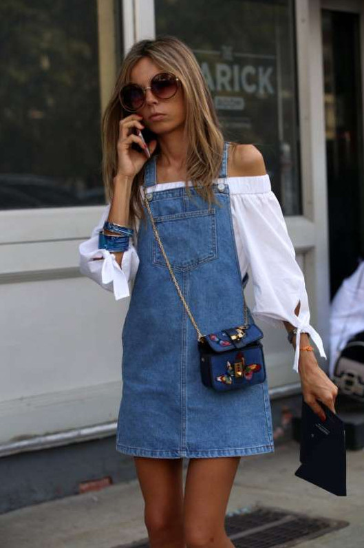 Хлопковое платье-рубашка с джинсами.