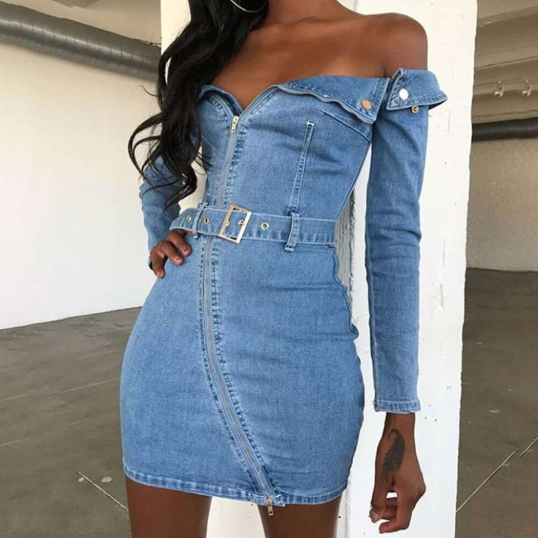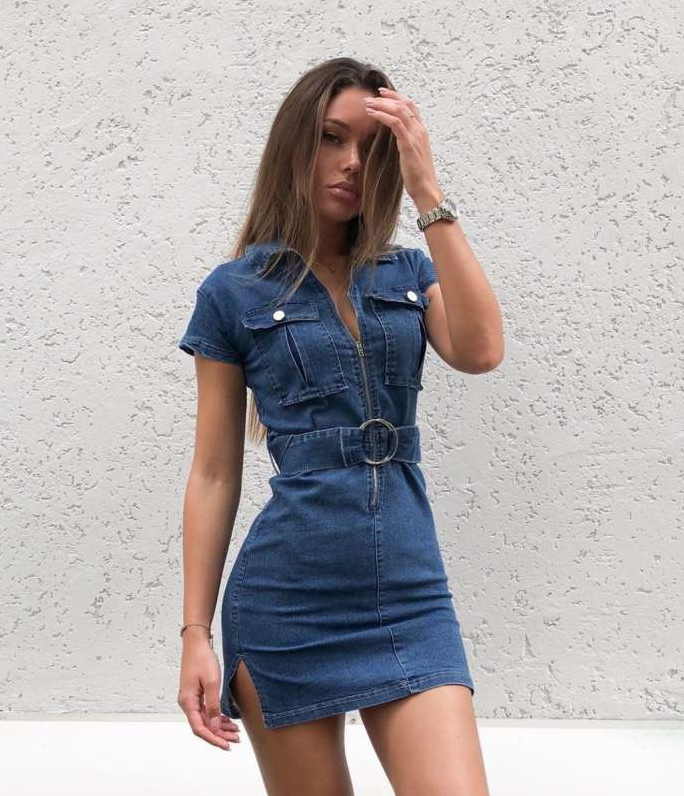 Джинсовое платье на молнии.