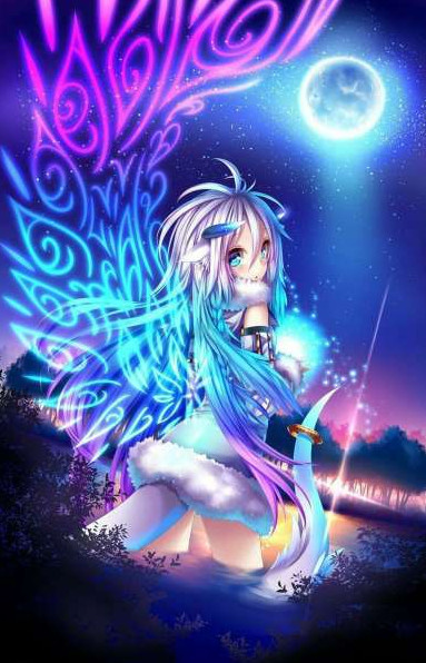 Девушка красавица с белоснежными волосами и голубыми очами.