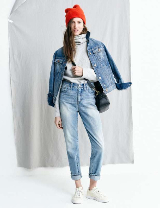Джинсы мом с ботинками Челси.