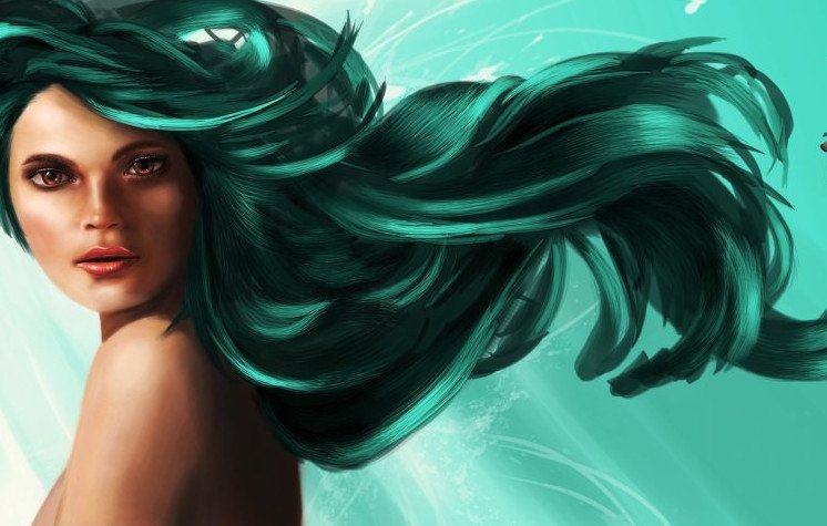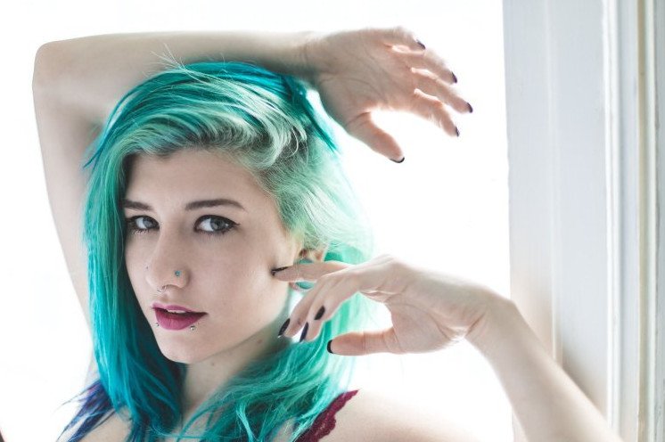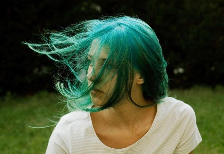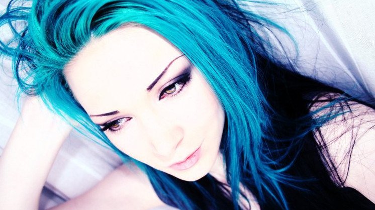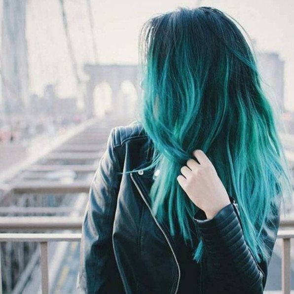 Симпатичная девушка красавица с бирюзовыми волосами.