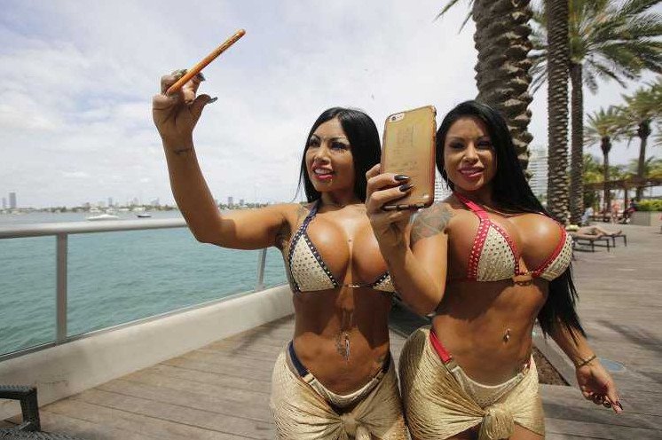 Роскошные женщины с большой грудью в прозрачных купальниках на море.