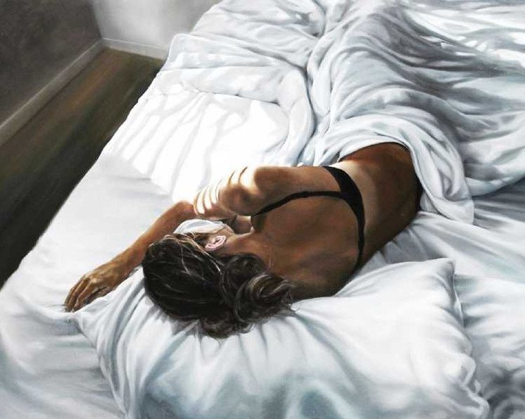 Растрепанные волосы и нежная кожа дремлющей девушки. Соблазнительные приспущенные трусики и чувственный сон. Мечты сбываются в мягкой постели. Вглядываясь в красоту спящего тела. Красивые пробуждения под простынями.
